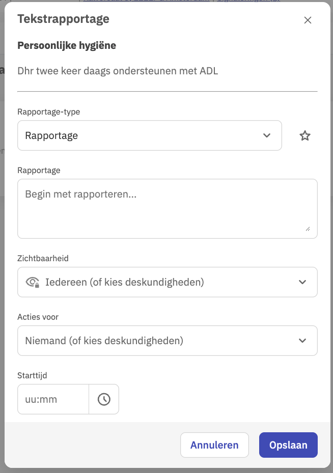 Momenteel kun je alleen tekstrapportages aan handelingen toevoegen.
