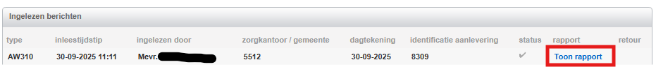 Informatie over de status van ingelezen retourberichten is ook op andere plekken in Ons beschikbaar:
