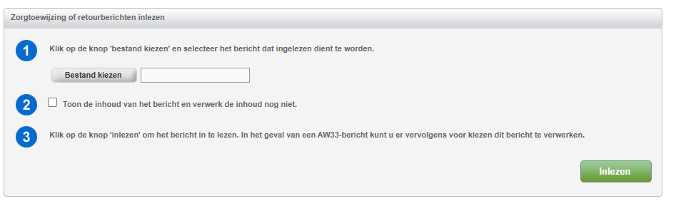 Bij het inlezen van retourberichten is er een verschil tussen berichten die te maken hebben met de zorgregie van de cliënt (MAZ, MUT, start, stop) en retourberichten die betrekking hebben op facturen of declaraties. Waar dit onderscheid relevant is, wordt dit in de handleiding toegelicht.