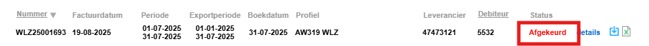 Ook staat de reden voor de afkeur weergegeven onder het veld Melding in het factuurdetailoverzicht: