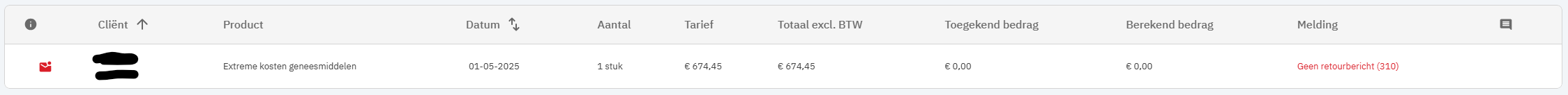 Record is niet beoordeeld (wegens afkeuring boven-of ondergeschikte records): deze melding houdt in dat er een probleem is met de basisgegevens van de cliënt, zoals BSN of NAW-gegevens. Door met de muis op de melding te gaan staan, is de exacte reden te zien.