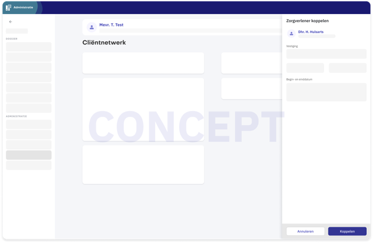 - cliëntspecifieke notities vastleggen bij de koppeling