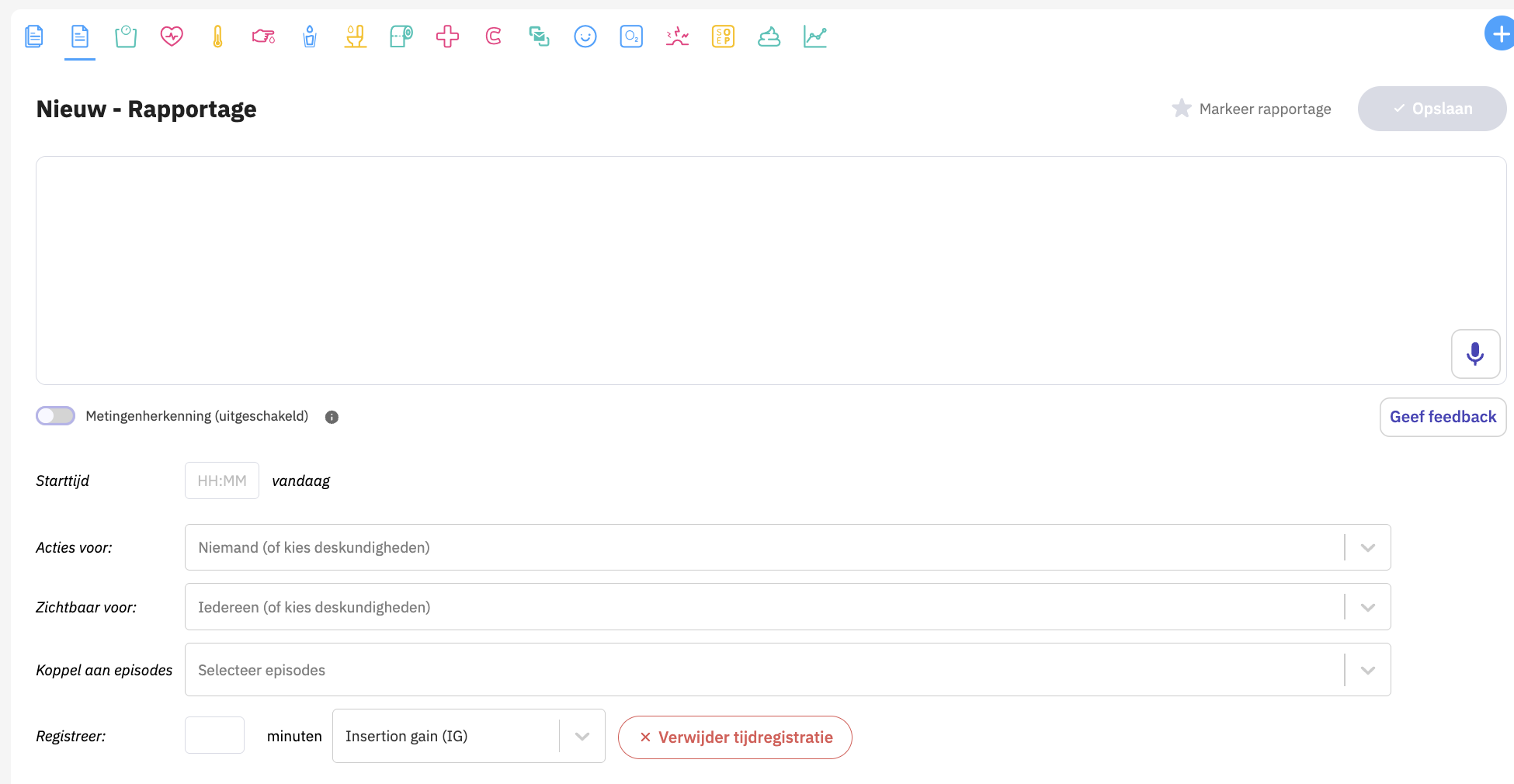 - Als je aan je tekstuele rapportage een episode koppelt, dan wordt deze ook overgenomen naar de herkende metingen en worden die ook opgeslagen en gekoppeld aan dezelfde episode.