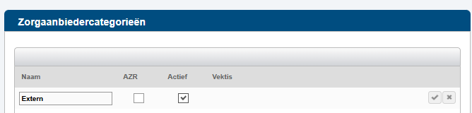 Om alle gegevens uit een eOverdracht goed te verwerken zijn extra instellingen nodig. Een externe zorgaanbiedercategorie is nodig voor de professionele contacten zonder AGB-code. Middels de AGB-code kan automatisch de correcte zorgleverancier categorie bepaald worden, maar de AGB-code wordt niet altijd meegestuurd. Om deze professionele contacten dan ook over te nemen bij de cliënt, is een extra categorie nodig. Deze externe zorgaanbiedercategorie moet "Extern" heten. De nieuwe categorie is aan te maken binnen Ons® Administratie onder Beheer → Instellingen → Overige instellingen → Zorgaanbiedercategorieën. Hierbij wordt AZR niet aangevinkt.